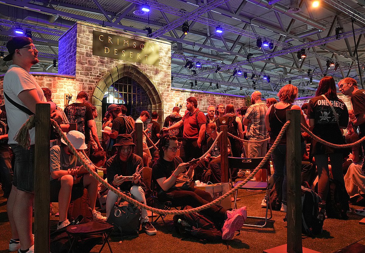 (쾰른=연합뉴스) 김주환 기자 = 22일(현지 시간) 독일 쾰른에서 개막한 게임스컴 2025 펄어비스 부스에 오픈월드 액션 어드벤처 신작 '붉은사막'을 체험하려는 관람객들이 줄을 서고 있다. 2025.8.22 jujuk@yna.co.kr