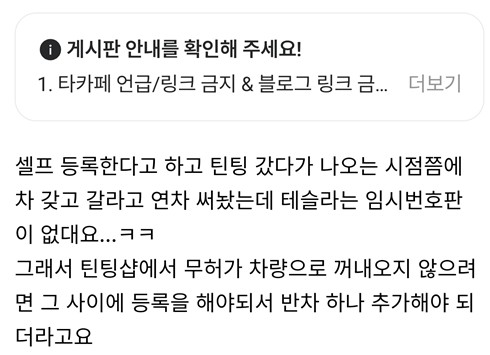 20일 테슬라, 포드 등의 국내 온라인 동호회에 따르면 일부 수입차 브랜드들은 현재 신차 출고 시 소비자에게 임시번호판 발급이 불가능하다고 안내하며 정식 등록을 유도하고 있다.