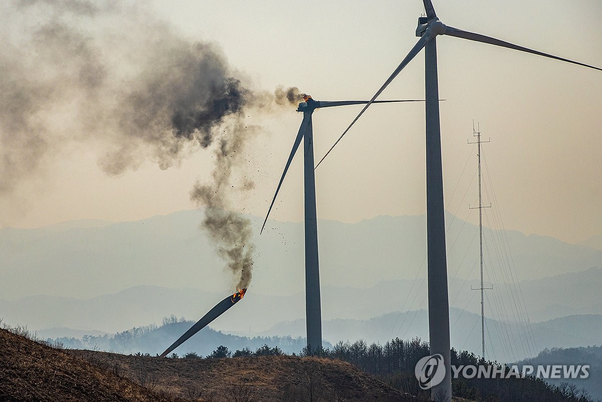 지난달 2일에는 영덕풍력발전단지 내 발전기 1기가 꺾이면서 도로를 덮치는 사고 발생했고, 같은 달 10일에는 경남 양산시 에덴밸리 인근 야산의 풍력발전기에서 불이 났다.