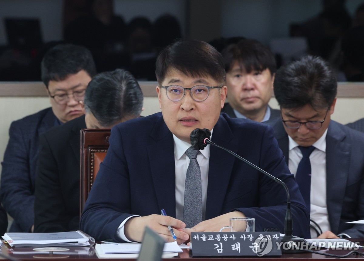 (서울=연합뉴스) 이진욱 기자 = 김태균 서울교통공사 신임 사장 후보자가 24일 서울 중구 서울시의회 별관에서 열린 인사청문회에서 의원 질의에 답하고 있다. 2026.3.24 cityboy@yna.co.kr