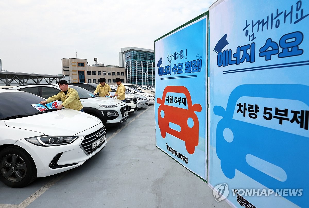 울산 북구청은 5부제 적용 범위를 청사 주차장뿐 아니라 주변 도로까지 확대했고, 중구청은 요일별 운휴 차량 번호를 안내하는 포스터를 부착했다.