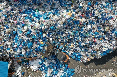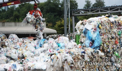 폐기물 선별장에 쌓인 재활용품. [연합뉴스 자료사진]