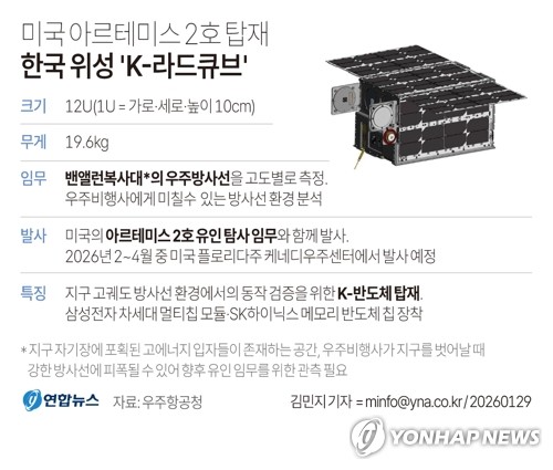 (서울=연합뉴스) 조승한 기자 = 반세기 만의 유인 달 탐사인 미국 '아르테미스 2호'에 동승해 우주로 향한 한국 큐브위성 'K-라드큐브'가 발사 이틀차에도 정상 교신하지 못했다.