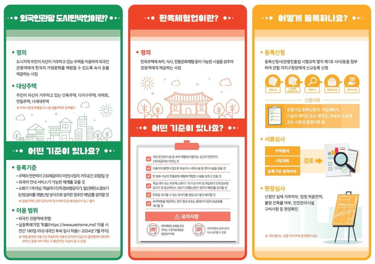 외국인관광도시민박업·한옥체험업·농어촌민박업 등 등록해야