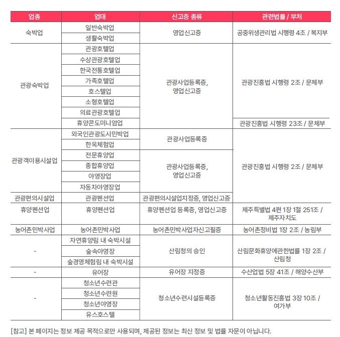 이는 국내 숙박업종이 27개나 되고 업종별로 일정 조건을 충족해야 숙박업 등록을 할 수 있는 등 제도가 복잡해 일반인들이 정확한 기준을 알기 어렵기 때문이다.