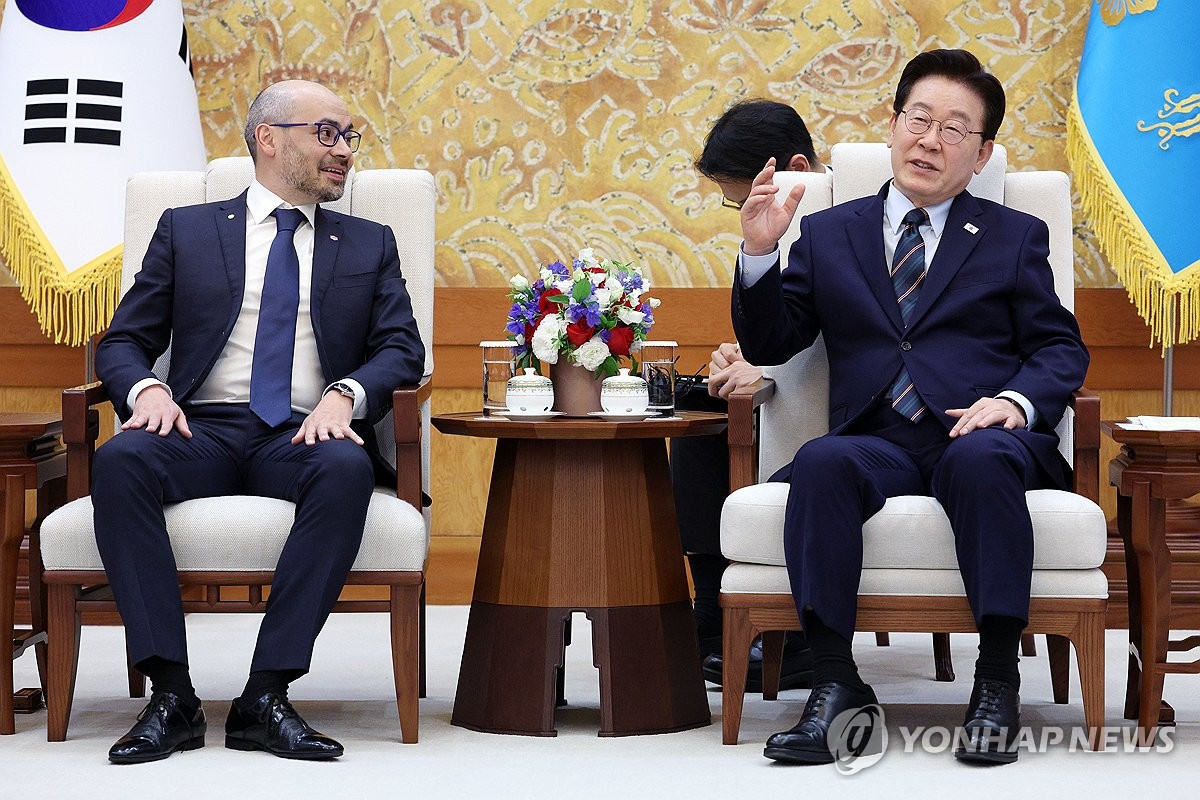(서울=연합뉴스) 고동욱 기자 = 이재명 대통령과 '알파고의 아버지' 데미스 허사비스 구글 딥마인드 최고경영자(CEO)가 27일 만나 인공지능(AI) 기술의 올바른 발전 방향에 대해 의견을 나눴다.