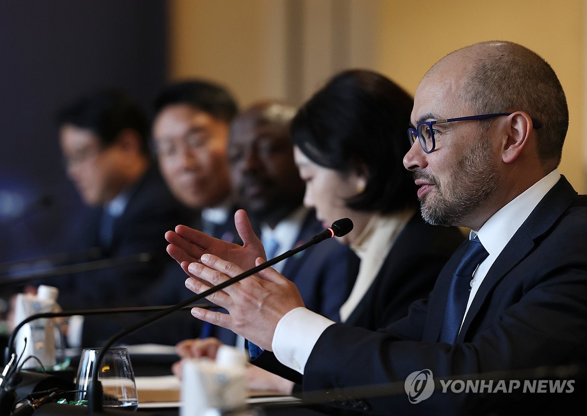 (서울=연합뉴스) 이지은 기자 = 데미스 허사비스 구글 딥마인드 최고경영자(CEO)가 27일 서울 종로구 포시즌스호텔에서 열린 과기정통부-구글 딥마인드 MOU 체결식에서 인사말을 하고 있다. 2026.4.27 jieunlee@yna.co.kr