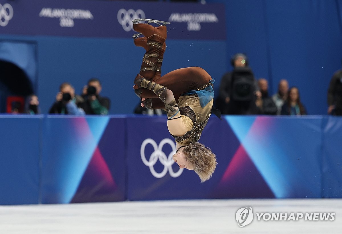 말리닌은 8일(한국시간) 이탈리아 밀라노 아이스스케이팅 아레나에서 열린 2026 밀라노·코르티나담페초 동계 올림픽 피겨스케이팅 팀 이벤트(단체전) 남자 싱글 쇼트 프로그램에서 연기 막판 관중의 탄성을 자아내는 백플립을 선보였다.