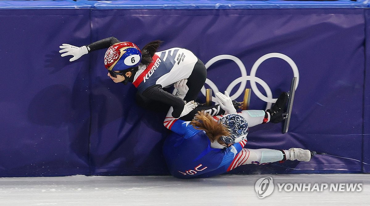 (밀라노=연합뉴스) 김경윤 기자 = 한국 쇼트트랙 대표팀이 2026 밀라노·코르티나담페초 동계 올림픽 첫 메달 레이스인 혼성 2,000m 계주 준결승에서 미국 선수에게 걸려 넘어지는 불운을 겪고 입상에 실패했다.