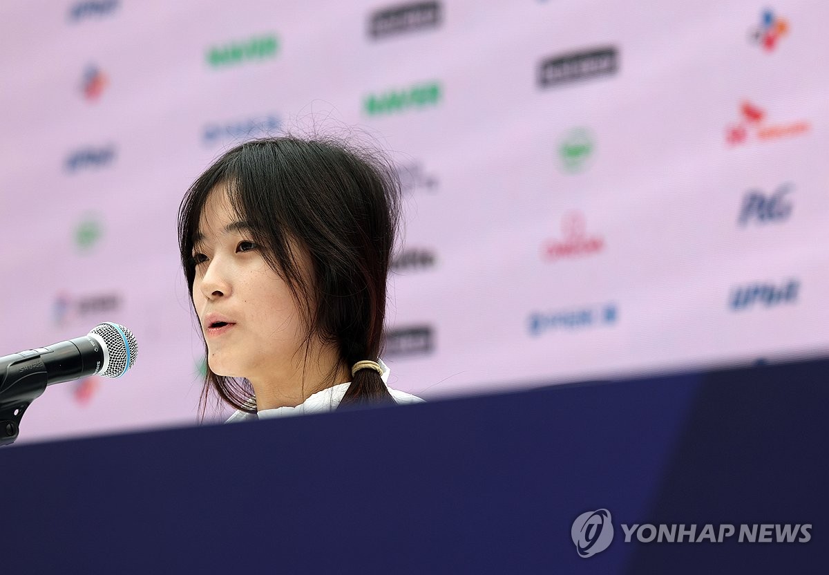 (밀라노=연합뉴스) 이지은 기자 = 2026 밀라노ㆍ코르티나담페초 동계올림픽 스노보드 여자 하프파이프에서 금메달을 차지한 최가온이 14일(현지시간) 이탈리아 밀라노 코리아하우스에서 열린 대한체육회 공식 기자회견에서 취재진 질문에 답하고 있다. 2026.2.14 jieunlee@yna.co.kr