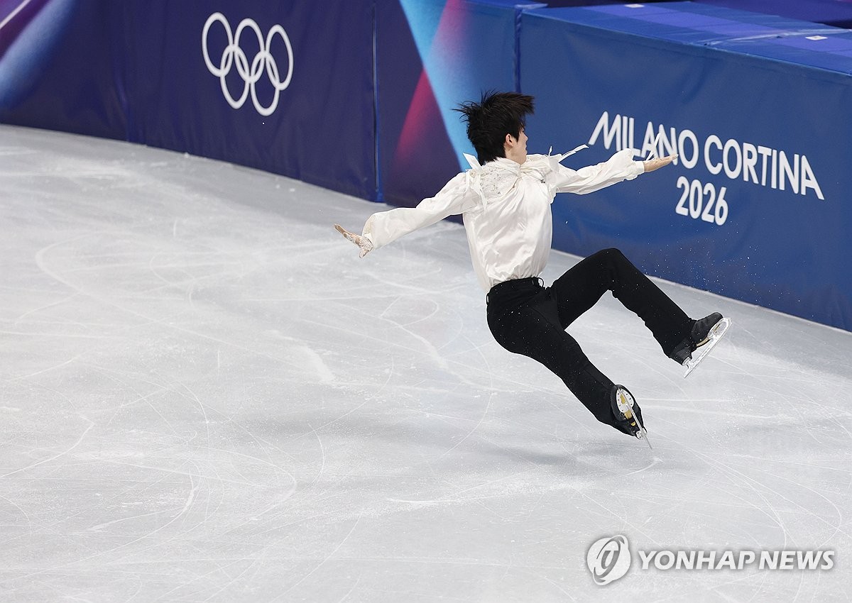 (밀라노=연합뉴스) 이지은 기자 = 13일(현지시간) 이탈리아 밀라노 아이스스케이팅 아레나에서 열린 2026 밀라노ㆍ코르티나담페초 동계올림픽 남자 싱글 프리 스케이팅에 출전한 차준환이 연기를 펼치고 있다. 2026.2.14 jieunlee@yna.co.kr