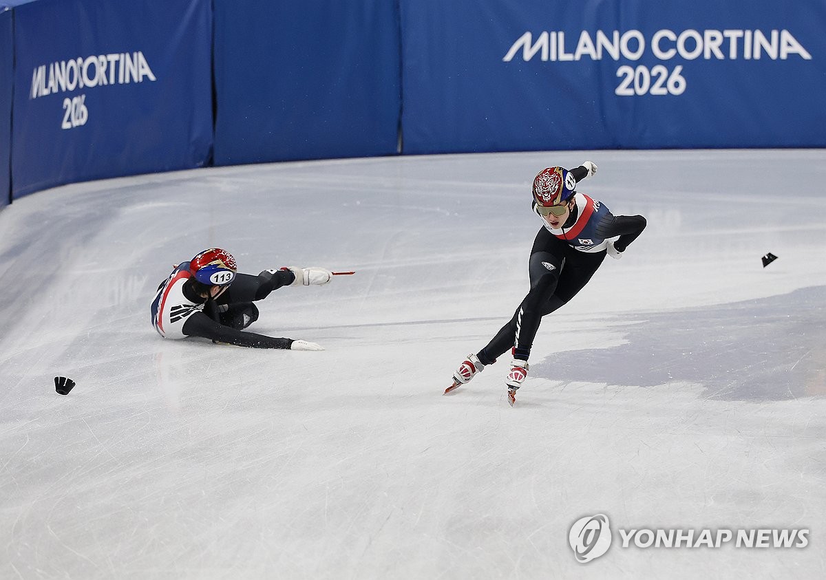 (밀라노=연합뉴스) 신준희 기자 = 14일(현지시간) 이탈리아 밀라노 아이스스케이팅 아레나에서 열린 2026 밀라노-코르티나담페초 동계올림픽 쇼트트랙 남자 1500m 준준결승에서 중국 린샤오쥔이 넘어지고 있다. 2026.2.15 hama@yna.co.kr