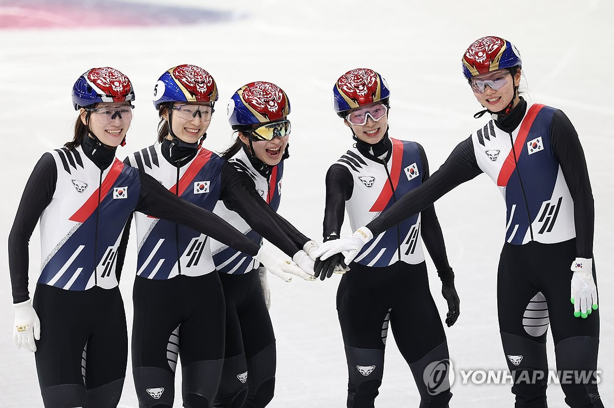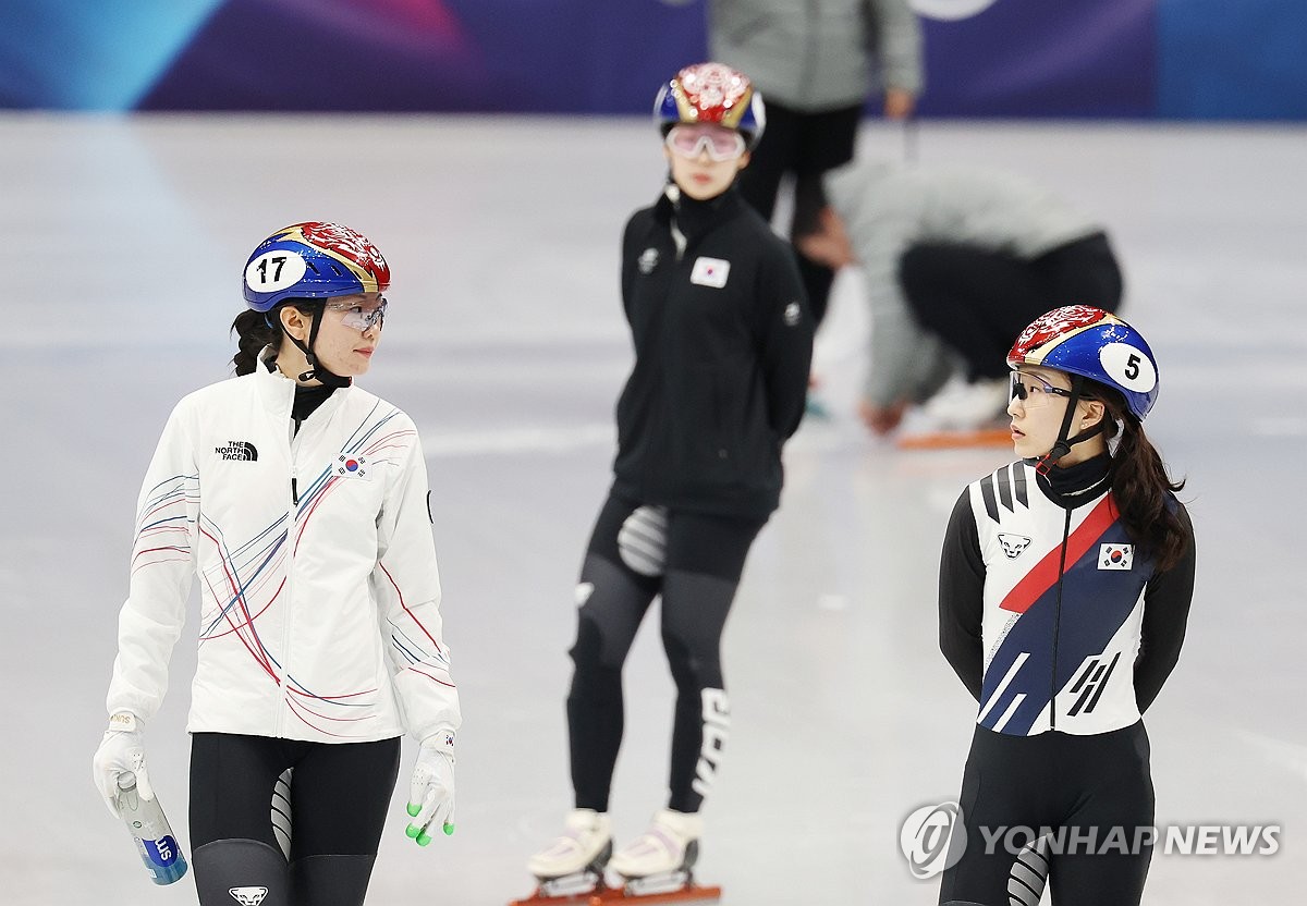 (밀라노=연합뉴스) 신준희 기자 = 2026 밀라노-코르티나담페초 동계올림픽 개막을 이틀 앞둔 4일(현지시간) 밀라노 아이스스케이팅 아레나에서 한국 쇼트트랙 최민정(5번)과 심석희가 대화하고 있다. 2026.2.4 hama@yna.co.kr