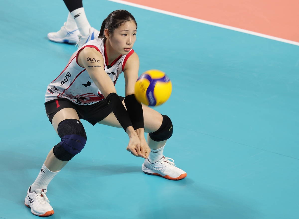 (수원=연합뉴스) 홍기원 기자 = 25일 경기도 수원실내체육관에서 열린 프로배구 V리그 여자부 현대건설 힐스테이트와 정관장 레드스파크스의 경기. 정관장 인쿠시가 리시브를 하고 있다. 2025.12.25. xanadu@yna.co.kr