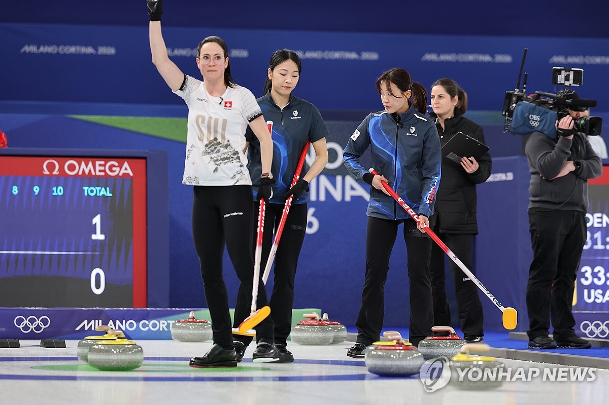 (밀라노=연합뉴스) 이영호 기자 = 한국 여자 컬링 대표팀이 2026 밀라노·코르티나담페초 동계 올림픽 예선에서 '세계랭킹 1위' 스위스의 벽을 넘지 못해 4강 유지에 비상등이 켜졌다.