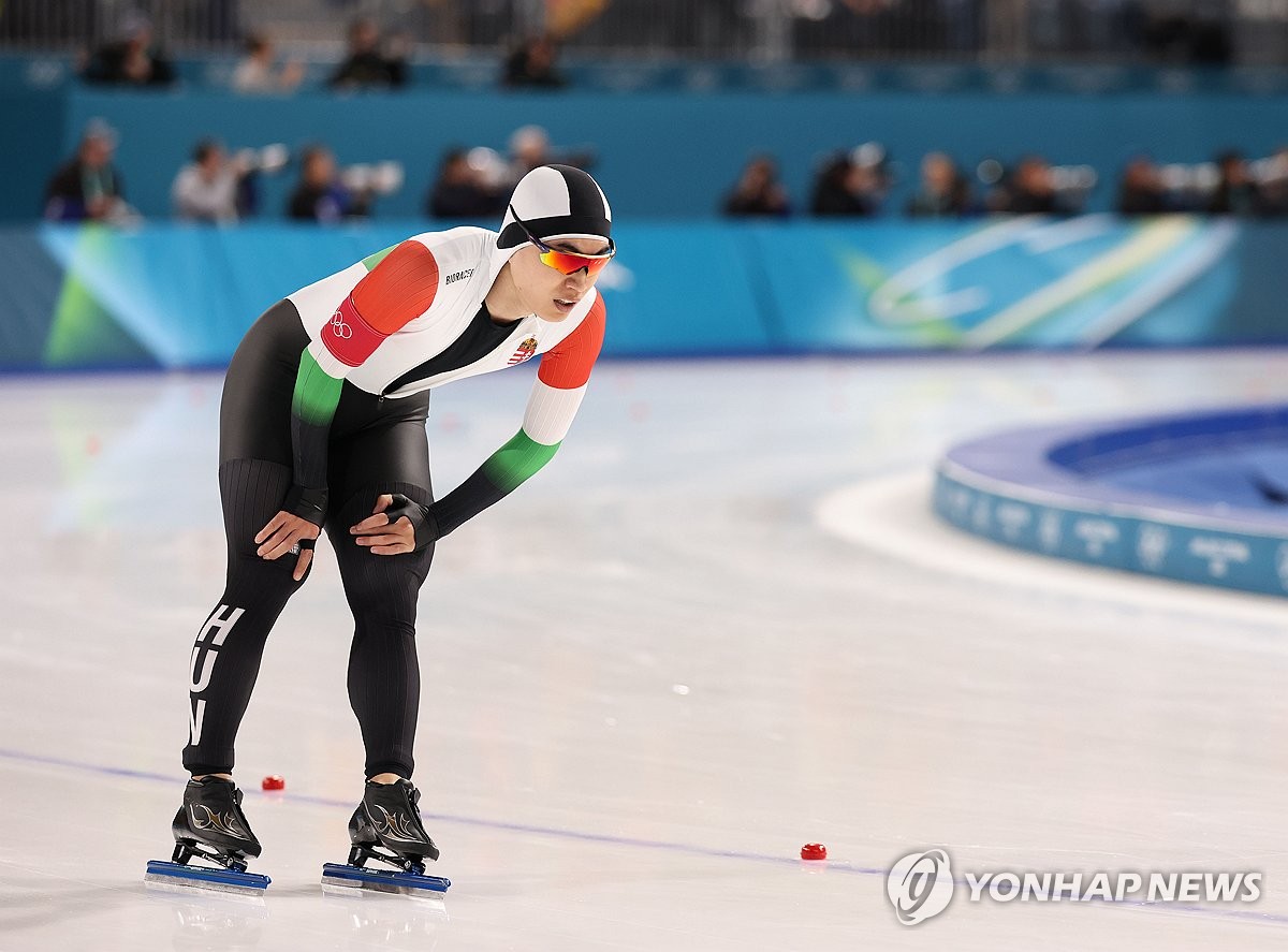 (밀라노=연합뉴스) 이지은 기자 = 19일(현지시간) 이탈리아 밀라노 스피드스케이팅 스타디움에서 열린 2026 밀라노ㆍ코르티나담페초 동계 올림픽 스피드스케이팅 남자 1500m에 출전한 헝가리의 김민석이 경기를 펼치고 있다. 2026.2.20 jieunlee@yna.co.kr