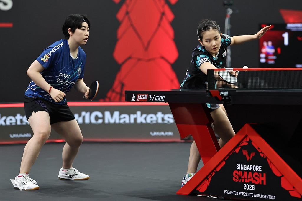 (서울=연합뉴스) 이동칠 기자 = 한국 여자 탁구 에이스 신유빈(대한항공)이 2026 월드테이블테니스(WTT) 싱가포르 스매시 여자복식 준결승에 올랐다.
