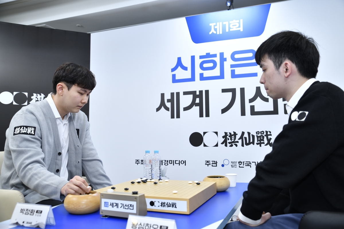 박정환은 25일 서울 중구 신한은행 본점 15층 특설 대국장에서 열린 제1회 신한은행 세계 기선전 결승 3번기 1국에서 중국의 차세대 강자 왕싱하오 9단에게 154수 만에 백 불계승을 거뒀다.