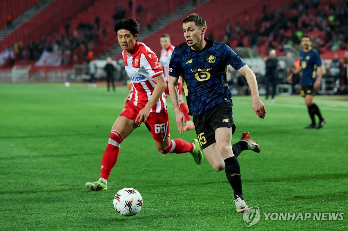 즈베즈다는 27일 오전(이하 한국시간) 세르비아 베오그라드의 라이코 미티치 스타디움에서 열린 2025-2026시즌 UEFA 유로파리그(UEL) 16강 플레이오프 2차전 홈 경기에서 LOSC 릴(프랑스)에 연장 승부 끝에 0-2로 졌다.