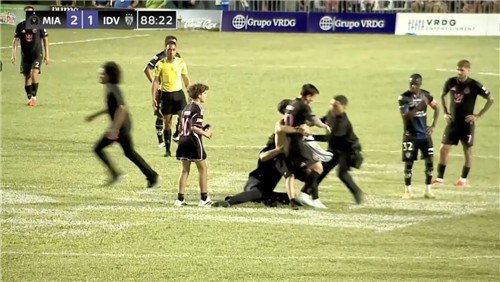 앞서 바르셀로나, 마이애미 유니폼을 입은 또 다른 팬 둘이 난입해 메시와 셀카를 찍고 사인을 받는 등 소란이 이어지던 터라 보안 직원의 대응은 더 급박했던 거로 보인다.