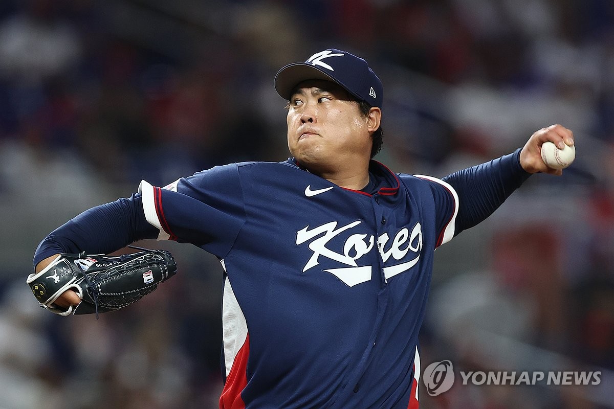 (마이애미=연합뉴스) 윤동진 기자 = 13일(현지시간) 미국 플로리다주 마이애미 론디포파크에서 열린 월드베이스볼클래식(WBC) 대한민국 대 도미니카공화국 준준결승전. 한국 선발투수 류현진이 1회 말 역투하고 있다. 2026.3.14 mon@yna.co.kr