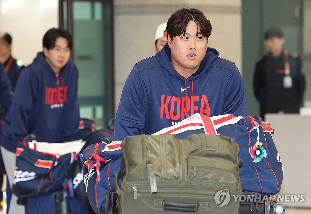 (영종도=연합뉴스) 김성민 기자 = WBC 8강 경기를 마친 한국 야구대표팀 류현진이 16일 인천국제공항 제1터미널을 통해 귀국하고 있다. 2026.3.16 ksm7976@yna.co.kr