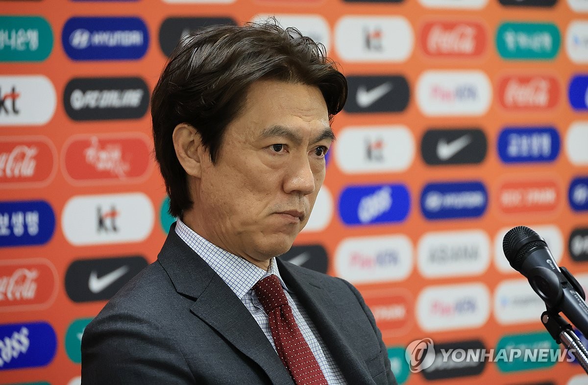 (천안=연합뉴스) 최재구 기자 = 홍명보 축구 국가대표팀 감독이 16일 천안 코리아풋볼파크에서 열린 3월 유럽 원정 평가전 명단발표 기자회견에서 기자의 질문을 들으며 생각에 잠겨 있다. 2026.3.16 jjaeck9@yna.co.kr