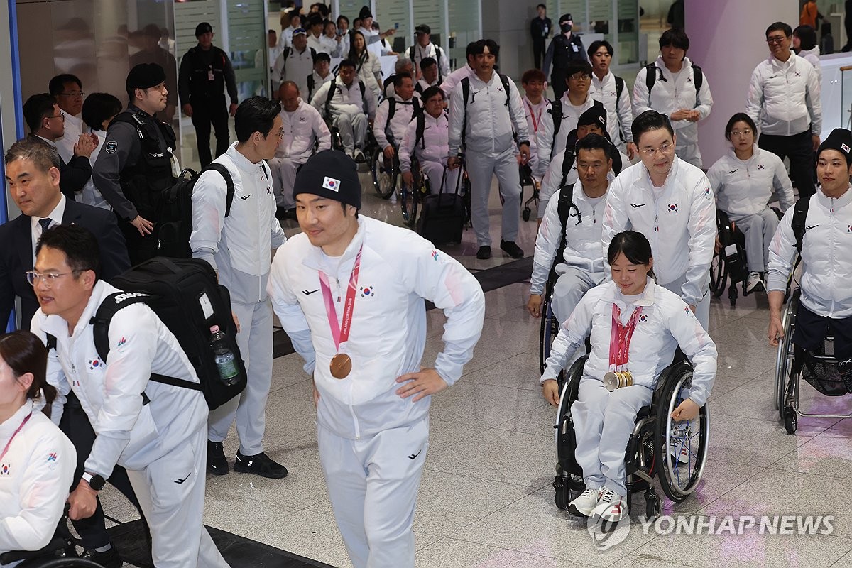 (영종도=연합뉴스) 김동한 기자 = 2026 밀라노·코르티나담페초 동계 패럴림픽에서 금메달 2개를 포함해 메달 7개를 획득하며 역대 최고 성적을 낸 대한민국 선수단이 17일 돌아왔다.