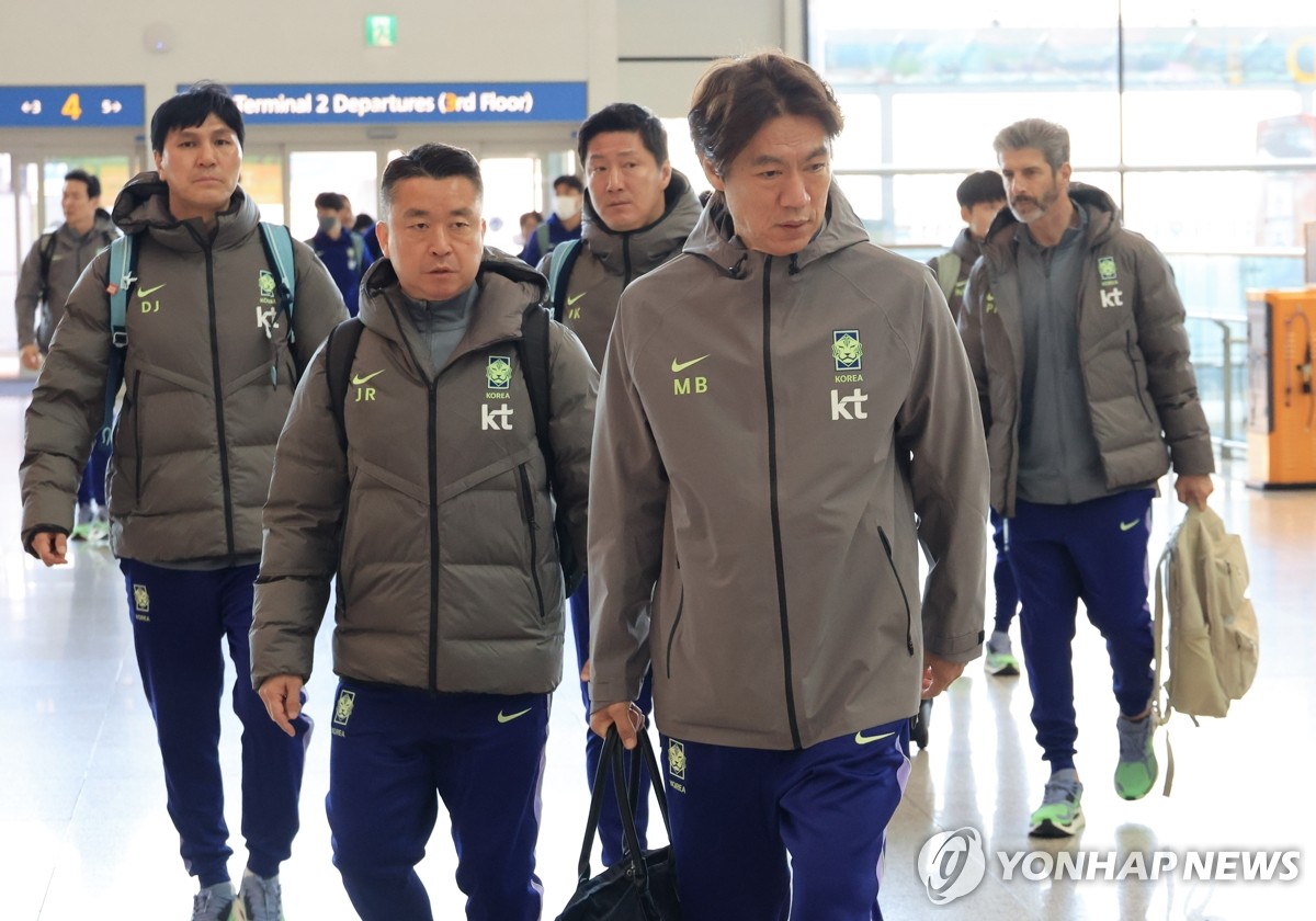 (영종도=연합뉴스) 최재구 기자 = 유럽원정 2연전에 나서는 한국축구 국가대표팀의 홍명보 감독이 23일 인천국제공항을 통해 출국하고 있다. 2026.3.23 jjaeck9@yna.co.kr