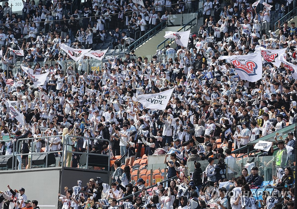 (서울=연합뉴스) 서명곤 기자 = 프로야구 정규리그 개막을 엿새 앞둔 22일 서울 송파구 잠실구장에서 열린 두산 베어스와 KIA 타이거즈의 시범경기에서 관중들이 응원하고 있다. 2026.3.22 seephoto@yna.co.kr