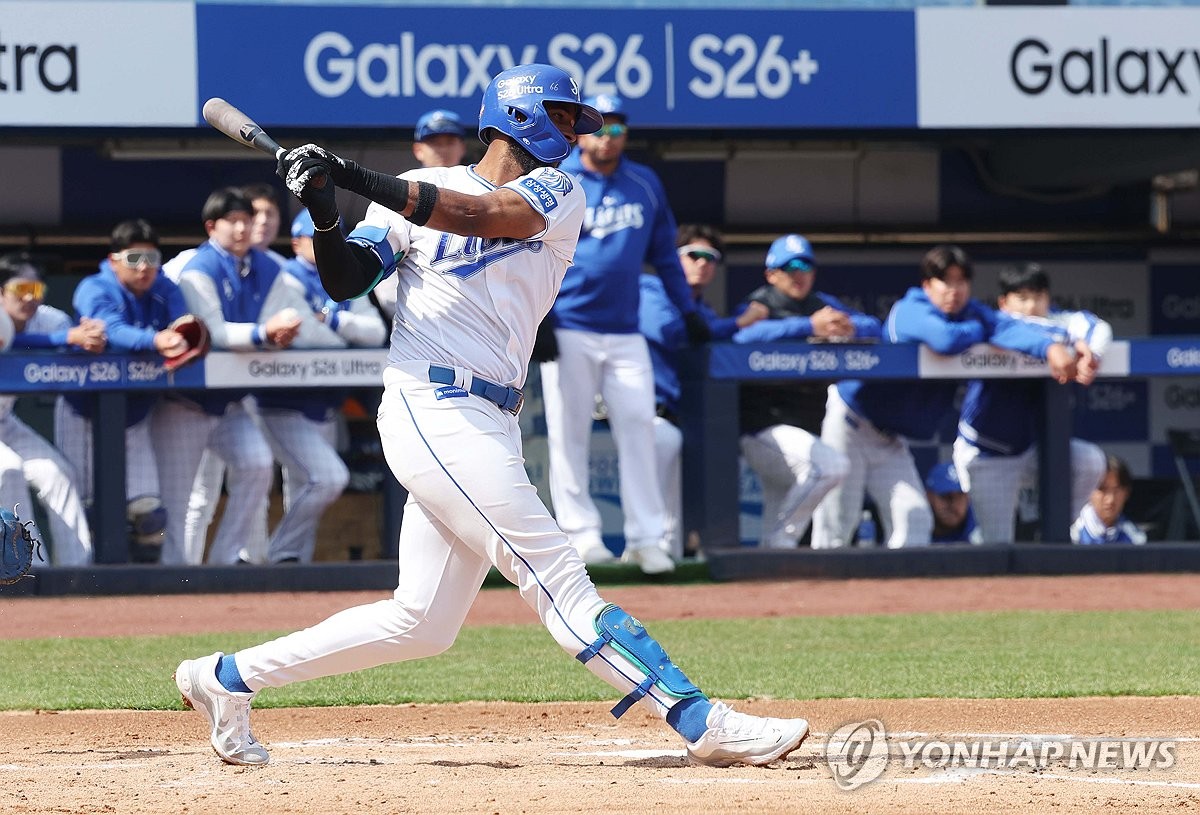 (대구=연합뉴스) 김현태 기자 = 22일 대구 삼성라이온즈파크에서 열린 프로야구 삼성 라이온즈와 LG 트윈스의 시범경기. 삼성 디아즈가 타석에서 스윙하고 있다. 2026.3.22 mtkht@yna.co.kr