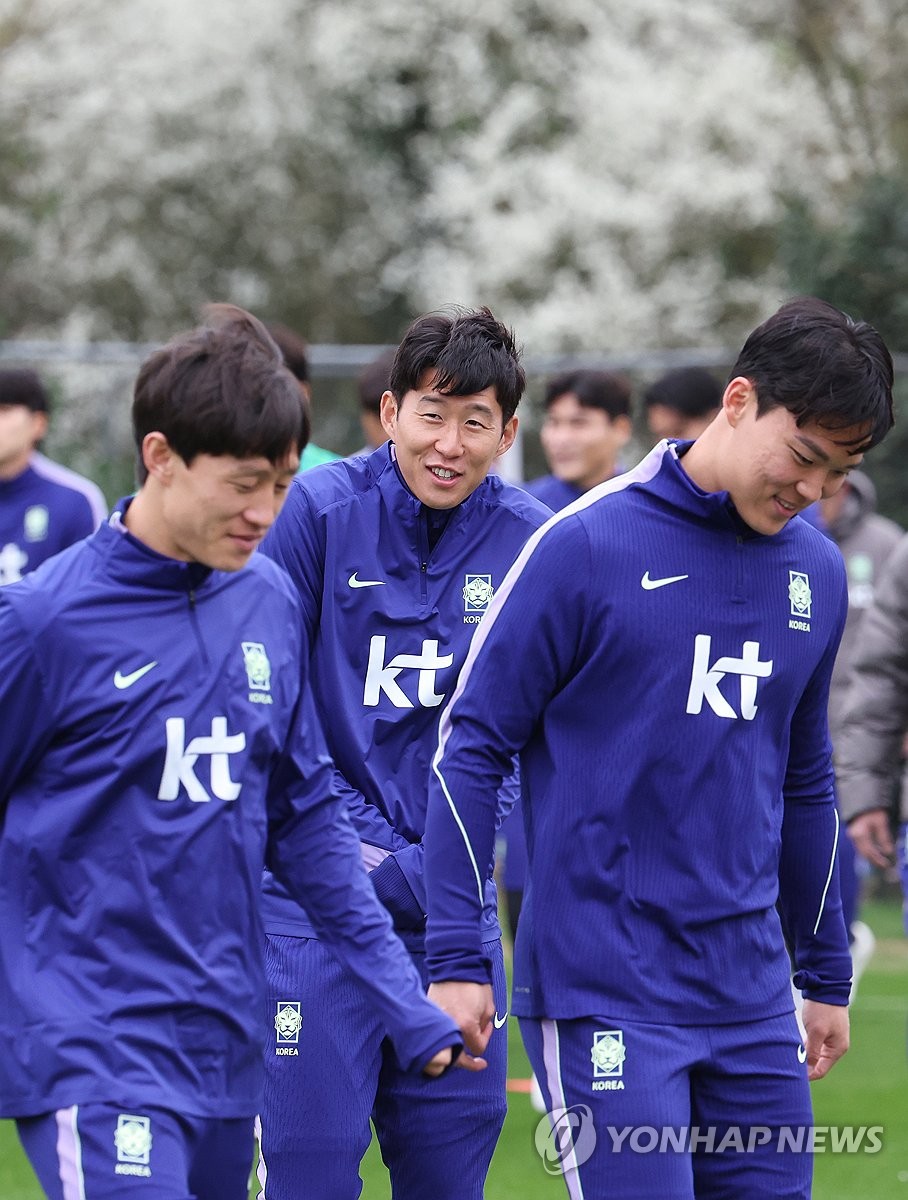 (밀턴킨스[영국]=연합뉴스) 최재구 기자 = 코트디부아르전을 앞둔 한국 축구 국가대표팀의 손흥민, 이재성, 오현규 등이 24일(현지시간) 영국 런던 북서쪽 밀턴킨스 훈련장으로 들어서고 있다. 2026.3.25 jjaeck9@yna.co.kr