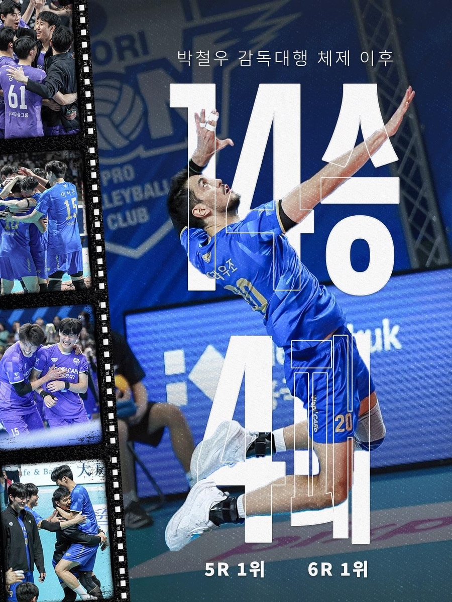 박철우 대행은 취임 후 18경기에서 14승 4패(승률 77.8%)의 놀라운 성적을 거두며 극적으로 포스트시즌 진출 티켓을 따냈다.