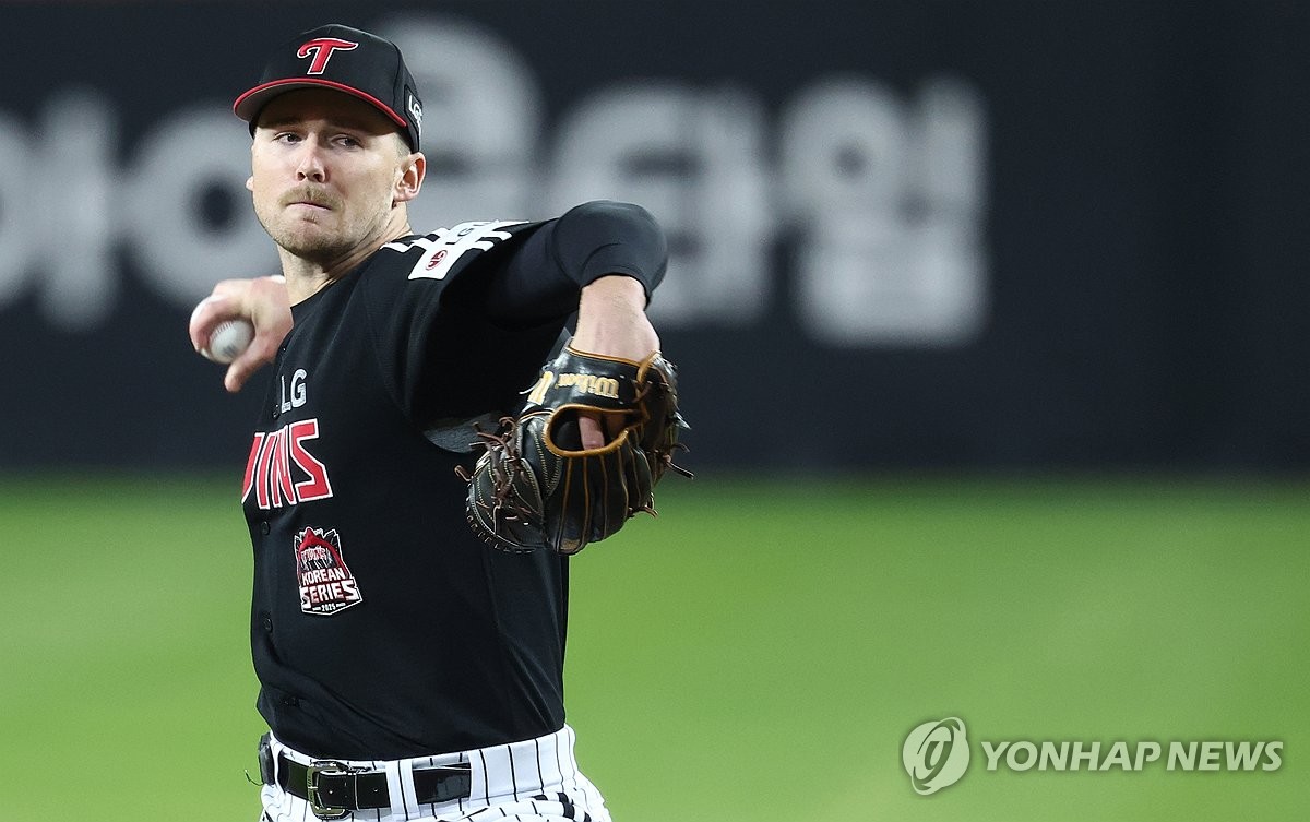(대전=연합뉴스) 윤동진 기자 = 31일 대전 한화생명 볼파크에서 열린 2025 프로야구 KBO리그 포스트시즌 한국시리즈 5차전 LG 트윈스와 한화 이글스의 경기. 7회 말 LG 톨허스트가 역투하고 있다. 2025.10.31 mon@yna.co.kr