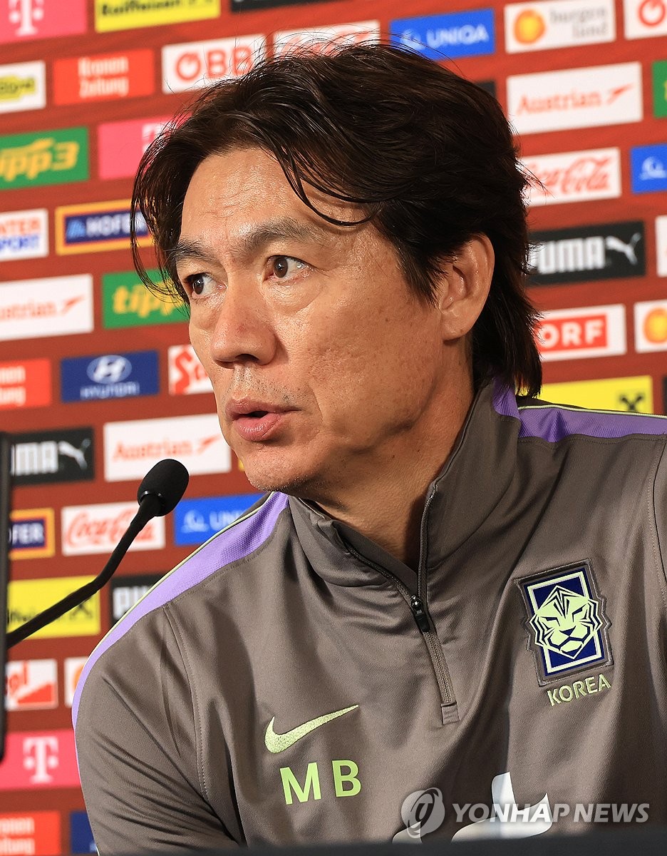 (빈=연합뉴스) 안홍석 기자 = '위기의 사나이' 홍명보 한국 축구대표팀 감독이 손흥민(LAFC), 이강인(파리 생제르맹) 등 핵심 공격수들의 오스트리아전 선발 출격을 예고했다.
