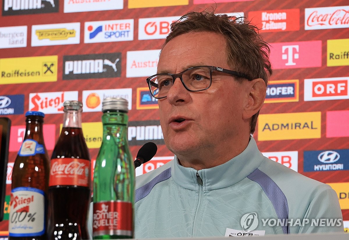 (빈[오스트리아]=연합뉴스) 최재구 기자 = 한국과의 평가전을 앞둔 오스트리아 축구대표팀의 랄프 랑닉 감독이 30일(현지시간) 빈 오스트리아 축구협회 캠퍼스에서 열린 공식 기자회견에서 질문에 답하고 있다. 2026.3.30 jjaeck9@yna.co.kr