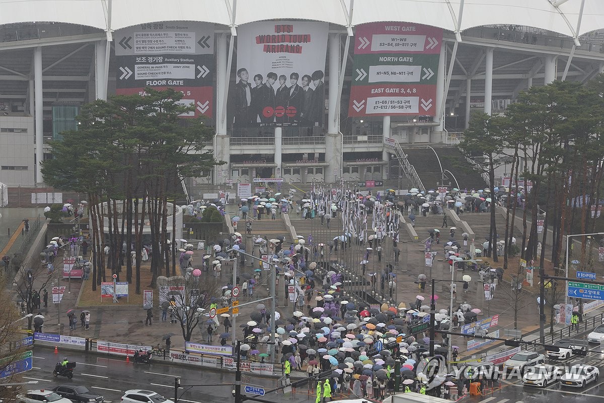 (고양=연합뉴스) 노승혁 기자 = 그룹 방탄소년단(BTS)이 9일 월드투어 '아리랑'의 막을 올리는 경기 고양시 일산서구 대화동 고양종합운동장 일대가 하루 종일 국내외 팬들로 북적였다.