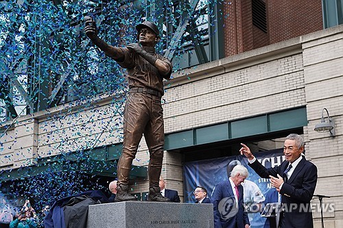 (서울=연합뉴스) 천병혁 기자 = 미국프로야구 메이저리그(MLB) 시애틀 매리너스 구단 영구결번 선수인 스즈키 이치로의 동상 제막 행사에서 예상치 못한 사고가 발생했다.