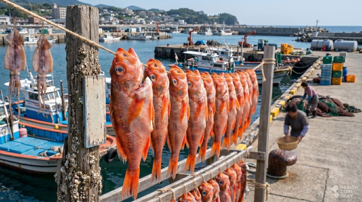 주황빛 빛깔이 선명한 도화볼락은 현지에서 ‘메바리’라는 이름으로 더 익숙하다. 이 생선은 울릉도 사람들이 사계절 내내 집안에 쟁여두고 먹을 정도로 친숙한데, 주로 해풍에 꾸덕꾸덕하게 말려 뒀다가 구이나 조림으로 요리해 먹는다. 살이 차지고 단단해 씹는 맛이 좋으며, 비린내가 적어 누구나 부담 없이 즐길 수 있는 생선이다. 봄철 포구마다 줄지어 해풍을 맞는 도화볼락의 모습은 이 시기에만 볼 수 있는 진귀한 풍경이다.