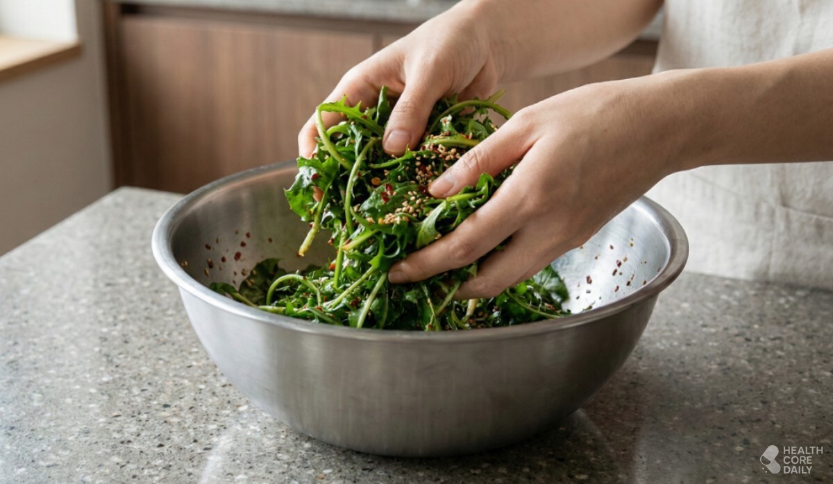 맛은 다소 쌉싸름하지만, 이 풍미는 다른 재료와 섞었을 때 오히려 입맛을 돋운다. 샐러드에 살짝 넣거나, 나물로 무쳐 먹는 방법도 좋다. 양을 많이 넣기보다는 소량씩 여러 번 섭취하는 편이 부담이 없다.