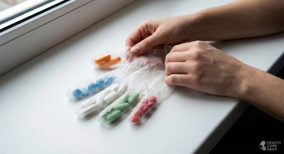 여행 갈 때는 짐을 간단히 챙기는 용도로도 쓸 수 있다. 칫솔, 면봉, 화장솜, 영양제 같은 자잘한 물건들을 장갑 손가락에 넣어두면 내용물끼리 섞이지 않고, 부피도 줄일 수 있다. 특히 하루치 약을 손가락 부분에 나눠 담아두면, 약봉지 없이도 간편하게 관리할 수 있어 외출이나 출장 시 활용도가 높다.