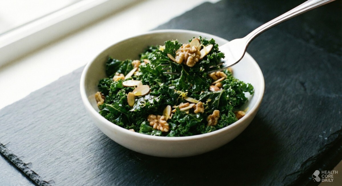 무엇보다 케일은 비타민A, C, 식이섬유, 칼슘, 철분까지 포함하고 있어 채소 하나만으로도 영양 구성이 탄탄하다. 색이 진한 채소는 대체로 영양 성분이 많고, 케일도 그에 잘 들어맞는다. 루테인처럼 시력에 좋은 성분부터 식이섬유까지 고르게 들어 있어, 다른 잎채소와 함께 식단에 자주 넣는 것이 좋다.