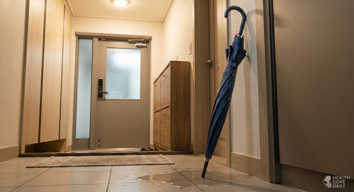 비에 젖은 우산을 현관에 세워두는 행동은 매우 위험할 수 있다. 표면에 남은 수분은 실내 습도를 높이는 원인이 되고, 이에 따라 곰팡이나 집먼지진드기가 자라기 좋은 환경이 만들어진다. 특히 곰팡이 포자는 공기 중에 퍼지며 호흡기 자극을 유발할 수 있고, 알레르기나 천식 증상을 악화시키기도 한다.