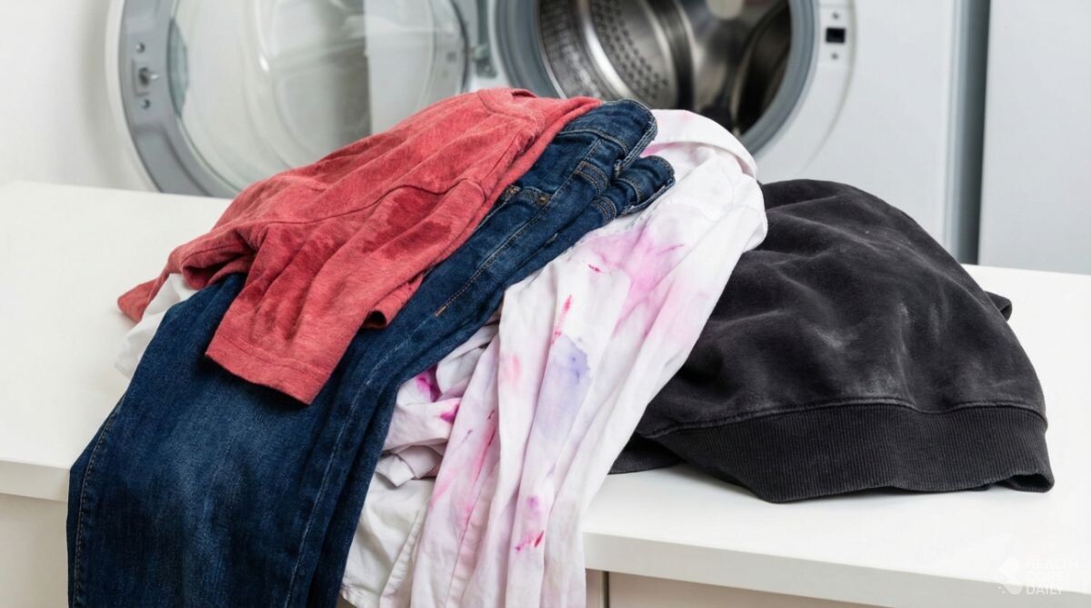 진한 색상의 옷은 염료 번짐 현상이 나타날 수 있다. 특히 진청바지, 빨간색 티셔츠, 검정색 의류처럼 색이 강한 제품은 처음 몇 번의 세탁에서 염료가 빠져나오기 쉽다. 이 염료가 다른 옷감에 스며들면, 얼룩처럼 남아 원래 색을 손상시킬 수 있다.