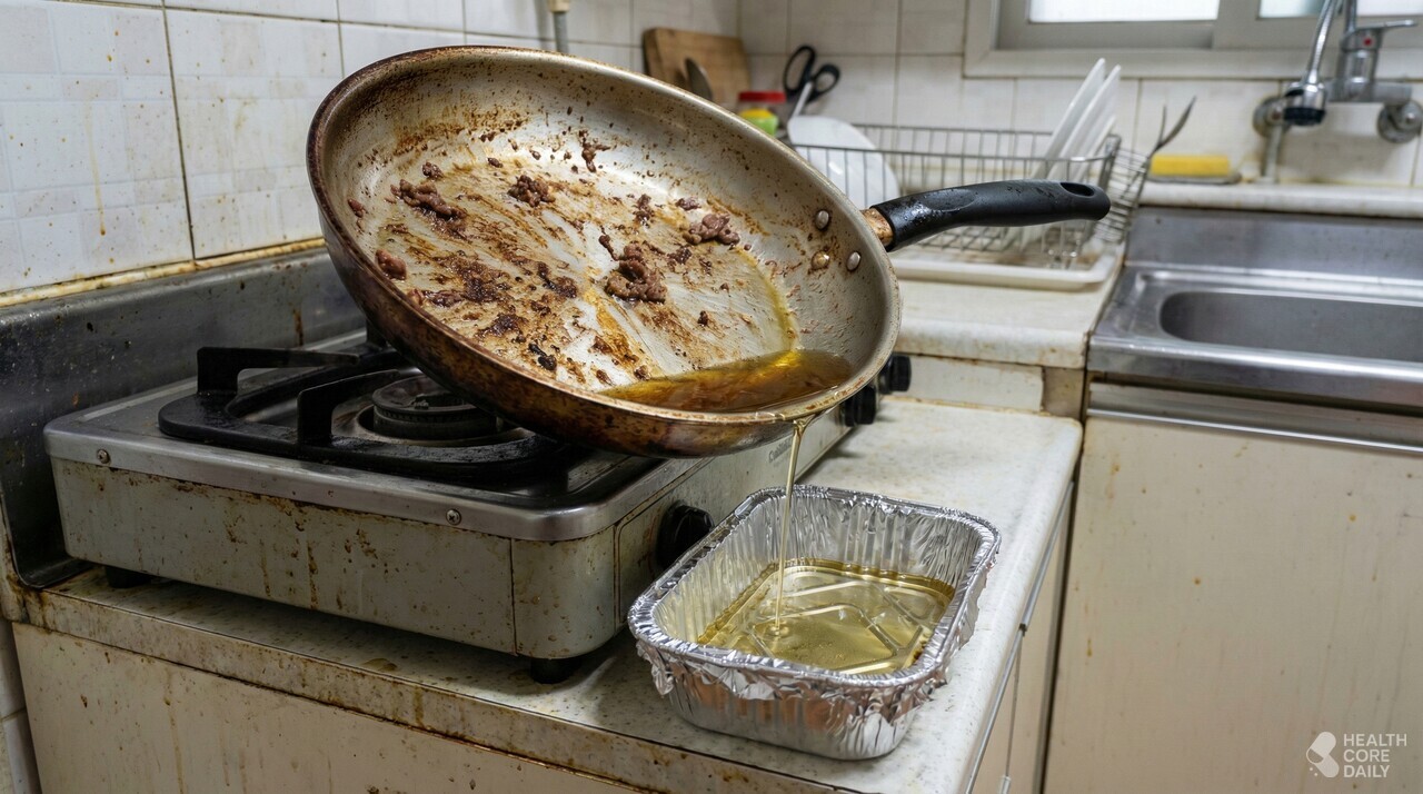 기름을 대충 닦아내고 설거지하는 방식은 오히려 팬의 수명을 단축시킨다. 키친타올은 기름을 다 걷어낸 다음, 팬 표면에 남은 자국을 정리하는 용도로만 제한하는 것이 안전하다. 알루미늄 포일 외에도, 커피 필터나 신문지를 접어서 기름 받이에 활용하는 방식도 있다. 이때 중요한 건 액체 상태의 기름을 직접 배수구로 흘려보내지 않는 것이다. 아무리 뜨거운 물을 부어도 기름은 관 내부에 달라붙어 쌓인다. 이로 인해 냄새, 막힘, 해충 유입 문제가 생길 수 있다.