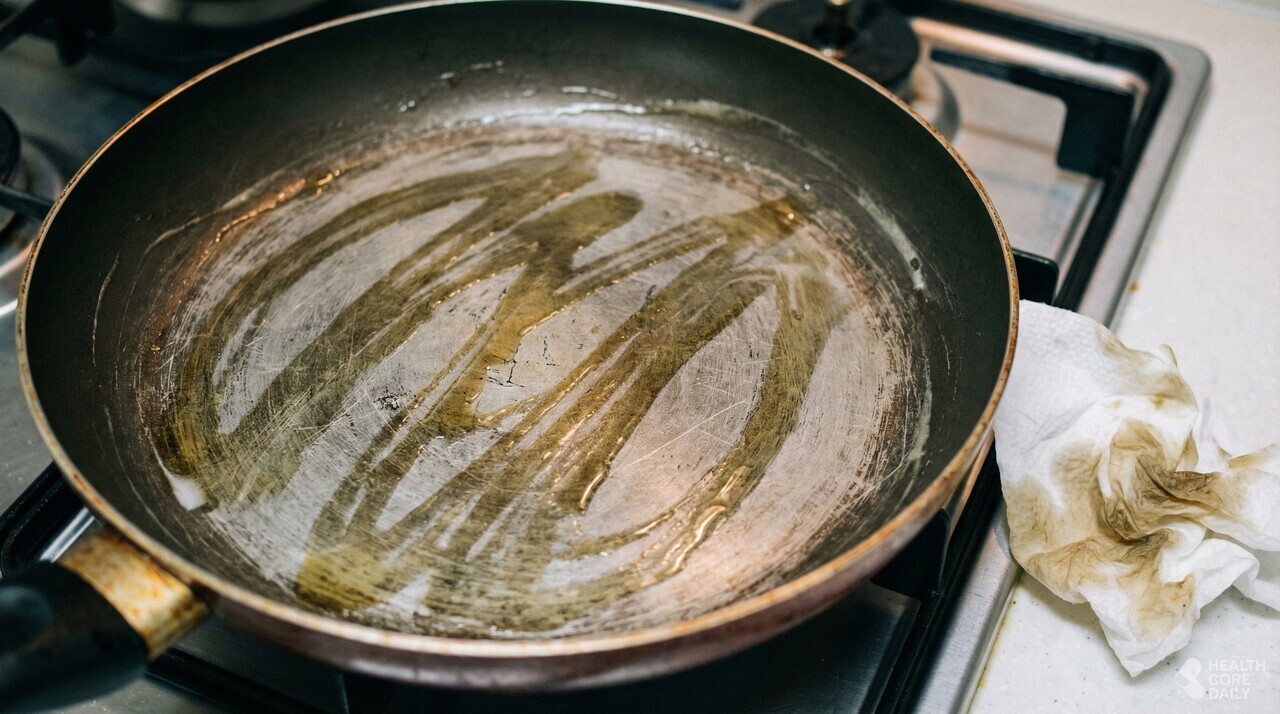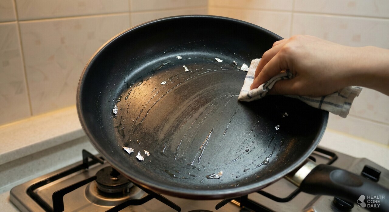 기름이 식기 전에 키친타올을 사용하는 것도 문제다. 따뜻한 기름이 종이에 쉽게 흡수되지 않아 기름이 팬 전체에 다시 퍼지게 된다. 팬 표면을 눌러가며 닦다 보면 코팅이 긁히거나 마모될 가능성도 높다. 특히 세라믹이나 논스틱 코팅 팬의 경우, 반복된 물리적 마찰은 표면을 점점 거칠게 만든다. 여기에 강한 세제나 뜨거운 물까지 바로 사용하면, 남은 기름과 세제가 반응하며 기름때가 더 달라붙을 수 있다.