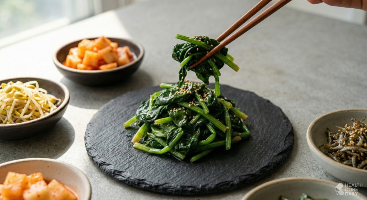 시금치는 다양한 반찬에 활용되는 국민 채소다. 나물로 무쳐 먹거나 국에 넣기도 하고, 김밥 재료로도 자주 쓰인다. 겉보기에는 흔한 잎채소 같지만, 맛과 영양 면에서는 의외로 깊은 인상을 남긴다. 특히 추운 계절에 재배된 시금치는 단맛이 배어 있어, 별다른 양념 없이도 입맛을 살리기에 충분하다.