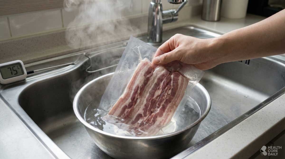 고기는 냉장고에서 천천히 해동하는 방식이 가장 안전하다. 조리 6시간 전쯤 냉장실에 옮겨 두면 표면이 말랑해지며 자연스럽게 녹는다. 이렇게 해동하면 미생물 번식을 줄이고 고기 육즙도 잘 보존된다.