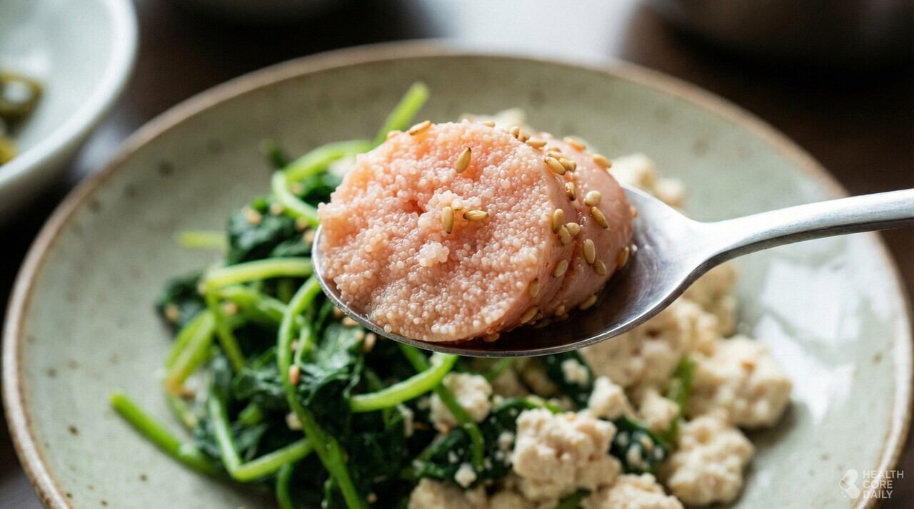 명란은 단백질 함량이 높다. 필수아미노산 구성이 균형을 이루고, 메티오닌과 라이신이 풍부하다. 간 기능 유지에 도움을 주는 성분이다. 비타민 B12는 신경 보호에 쓰이고, 셀레늄은 항산화 작용을 한다. DHA와 EPA 같은 오메가-3 지방산도 포함돼 있다. 다만 염분이 높다. 손질을 거치지 않으면 짠맛이 앞서 버린다. 연한 소금물로 겉면 염분을 정리하고, 청주에 잠시 담가 비린 향을 가라앉히는 이유다.