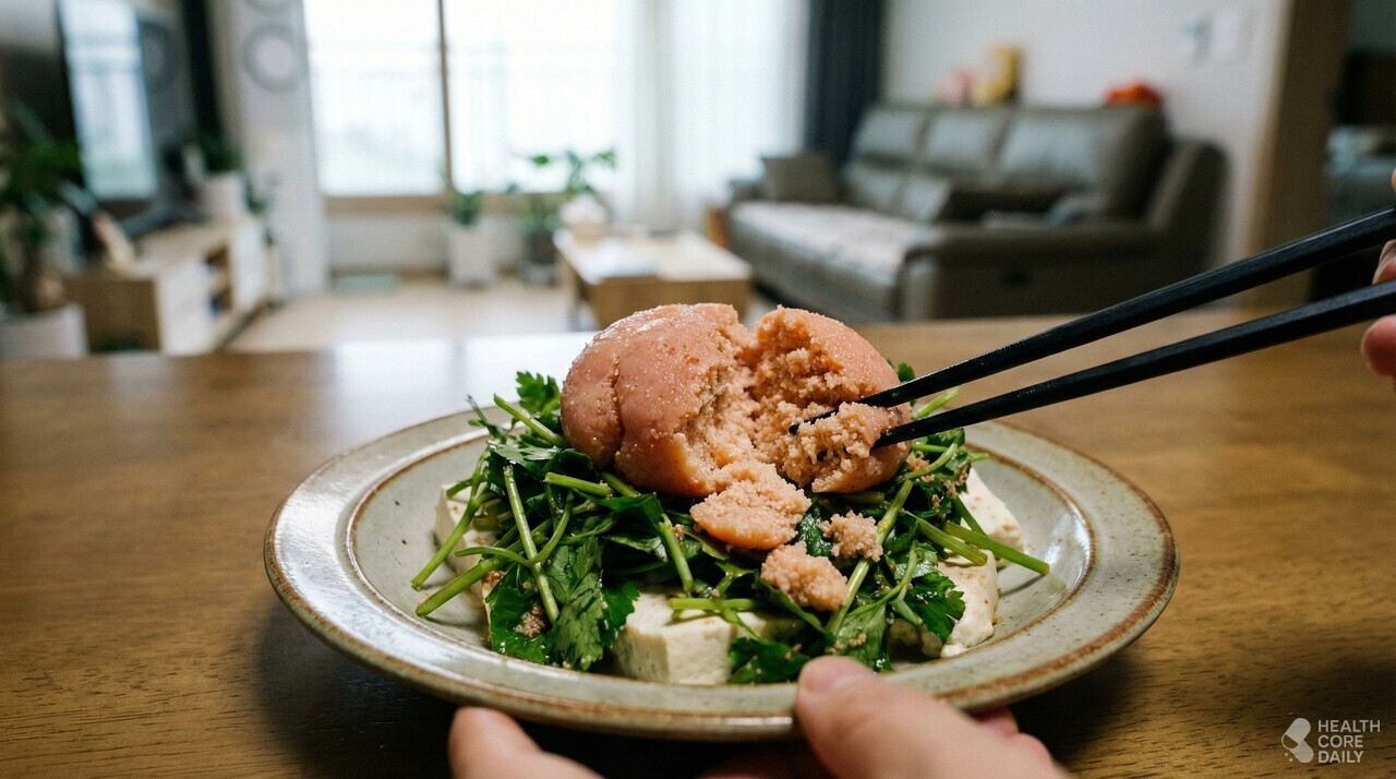 찬 공기가 매섭게 내려앉는 날이면 밥상은 자연스럽게 담백한 쪽으로 기운다. 기름기 많은 반찬이 이어지면 입안이 쉽게 피로해진다. 이럴 때 짠맛과 감칠맛이 또렷한 명란 한 덩이가 분위기를 바꾼다. 여기에 향이 맑은 참나물, 수분을 머금은 두부를 더하면 무겁지 않으면서도 힘 있는 한 접시가 완성된다. 명란참나물두부무침은 화려하지 않다. 대신 재료의 성질을 정확히 살려 밥맛을 끌어올린다.